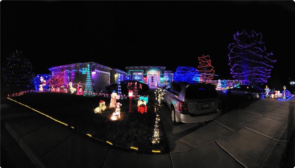 Congratulations Anja! The sea of blue and purple lights mesmerized us all – great find! Additional thanks goes out to Robert Wilson for submitting another great Christmas light panorama – good luck next time!